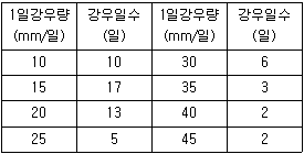 쓰레기매립지의 침출수 유량조정조를 설치하기 위해 과거 10년간의 강우조건을 조사한 결과 다음 표와 같다. 매립작업면적은 30,000m2이며, 매립작업 시 강우의 침출계수를 0.3으로 적용할 때 침출수 유량조정조의 적정용량(m3)은?