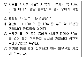 시료의 전처리방법 중 질산-황산에 의한 유기물분해에 해당되는 항목들로 짝지어진 것은?