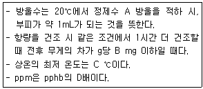 폐기물공정시험기준상의 규정이다. A+B+C+D의 합을 구한 것은? (문제 오류로 가답안 발표시 2번으로 발표되었지만 확정답안 발표시 모두 정답처리 되었습니다. 여기서는 가답안인 2번을 누르면 정답 처리 됩니다.)