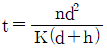 침출수가 점토층을 통과하는데 소요되는 시간을 계산하는 식으로 옳은 것은? (단, t=통과시간(year), d=점토층두께(m), h=침출수 수두(m), K=투수계수(m/year), n=유효공극률)