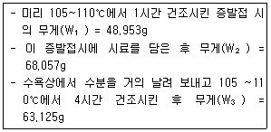 폐기물 중에 포함된 수분과 고형물을 정량하여 다음과 같은 결과를 얻었을 때 수분함량(%)과 고형물 함량(%)은? (단, 수분함량-고형물함량 순서)