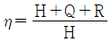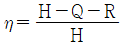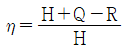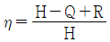 쓰레기의 발열량을 H, 불완전연소에 의한 열손실을 Q, 태우고 난 후의 재의 열손실을 R이라 할 때 연소효율 η을 구하는 공식 중 옳은 것은?