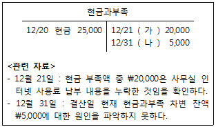 다음 현금과부족 계정의 기입 내용과 관련 자료에 따라 (가)와 (나)에 해당하는 계정과목으로 옳은 것은?