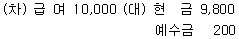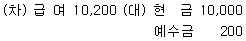 이번 달 종업원 급여 ₩10,000을 지급하면서 소득세 ₩200을 차감한 잔액은 현금으로 지급하다. 이 거래에 대한 분개로 옳은 것은?