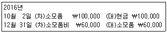 다음은 소모품에 대한 회계 처리 분개이다. 분개에 대한 설명으로 옳은 것은?