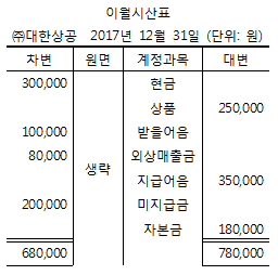 다음은 (주)대한상공의 잘못 기입한 이월시산표이다. 이월시산표를 수정한 후에 이에 대한 설명으로 옳은 것은?