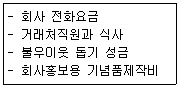 다음 자료는 ㈜상공전자의 비용 지출내역이다. 회계처리 시계정과목으로 사용하지 않는 것은?