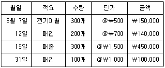 다음 A상품 관련 매매 자료에 의하여 총평균법으로 5월 인도 단가를 계산한 것으로 옳은 것은? (단, 원 미만 버림)