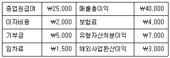 다음 자료에 의하여 포괄손익을 계산하면 얼마인가? (단, 제시된 자료 외에 법인세 비용 등은 고려하지 말 것)