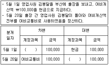 다음 거래에 대하여 분개할 경우 ( )안에 동일하게 들어갈 계정과목으로 옳은 것은?