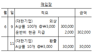 다음 자료는 상공기업의 매입장 일부이다. 관련 자료를 이용하여 6월 11일 현재 외상매입금 잔액을 계산하면 얼마인가? (단, 제시된 자료 외에는 고려하지 않는다.)
