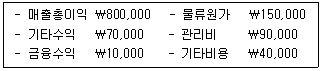 다음 비용을 기능별로 분류한 포괄손익계산서 자료를 이용하여 계산한 영업이익은 얼마인가?