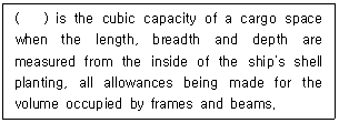 1 배수량 등곡선도(hydrostatic curves)에 나타나지 않는 것은? 2 적화척도(deadweight scale)에 관한 설명으로 옳은 것은? 3 선수와 선미에서의 평균흘수가 각각 df와 da, 중앙부 우현과 좌현에서의 흘수가 각각 dθs와 dθp로 측정된 선박에서 쿼터평균(Q/M) 흘수를 나타내는 식은? (단, 선박경사에 의한 선수미 흘수보정은 생략한다.) 4 선박의 경사시험 결과를 토대로 계산한 용골(기선)으로부터 무게중심까지의 높이(KG)는 몇 m인가? 5 선박의 세로축에 관한 횡동요 질량 관성반지름이 5 m, 선박의 고유 횡동요 주기가 10 초 일 때, GM은 약 몇 m인가? (단, π = 3.14, 중력가속도 g = 9.8 m/s2 이다.) 6 선박의 탱크에 자유표면(free surface)을 가지는 유동수(free water)가 있을 경우 선박에 미치는 영향에 관한 설명으로 옳지 않은 것은? 7 길이 200 m, 폭 15 m인 선박이 해수 중에 등흘수로 떠있다. 이 선박의 중앙에 750 ton의 화물을 적재했을 때 흘수의 증가량은 약 몇 cm인가? (단, 해수는 표준 해수비중, 수선면적계수는 0.75, 상하 방향에 따른 수선면적의 변화는 없다.) 8 메타센터 높이(GM)를 계산하는 식으로 옳은 것은? (단, KB는 기선으로부터 부심까지의 연직높이, BM은 메타센터 반지름, KG는 기선으로부터 무게중심까지의 연직높이이다.) 9 정적 복원력 곡선에서 알 수 없는 것은? 10 갑판상에 600 ton의 중량물을 적재한 선박의 선수흘수가 6.5 m, 선미흘수가 6.8 m이다. 이 중량물을 선수 쪽으로 몇 m 이동하면 등흘수가 되는가? (단, 매 cm 트림모멘트는 100 ton-m이고, 중량물은 선박의 길이방향 무게중심선 상에서 이동한다.) 11 평균흘수가 6.52 m이고, 배수량이 12,000 ton인 선박이 비중 1.000인 강에서 출항하여 해수비중이 1.030인 바다로 항해하면 평균흘수는 약 몇 cm인가? (단, 매 cm 배수톤은 15 ton, 항해 중 배수량 및 트림의 변화는 없다.) 12 선박의 적화량에 관한 설명으로 옳지 않은 것은? (단, 베일용적은Vb, 그레인용적은Vg, 화물이 차지하는 선창용적은Vc이다.)
