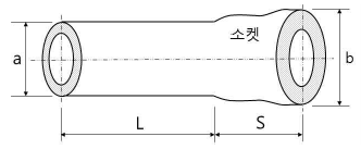 그림과 같이 한쪽에 소켓이 부착되어 있는 원통형 직관의 검량용적(m3)은? (단, a는 3 m, b와 S는 4 m이고, L은 8 m이다.)