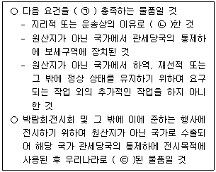 다음은 「관세법」 제229조에 따라 원산지를 결정할 때 해당 물품이 원산지가 아닌 국가를 경유하고 우리나라에 운송ㆍ반입된 물품인 경우에도 우리나라에 직접 반입한 것으로 보는 경우이다. ㉠~㉢에 들어갈 내용으로 옳은 것은?(순서대로 ㉠, ㉡, ㉢)