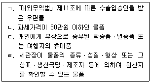 관세법령상 원산지증명서 제출이 면제되는 것만을 모두 고르면?