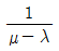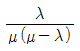 단일 서비스기관의 대가 행렬모형에서 평균 도착율이 λ, 평균서비스율이 μ일 때, 시스템 내의 평균 체류시간을 나타내는 식은?