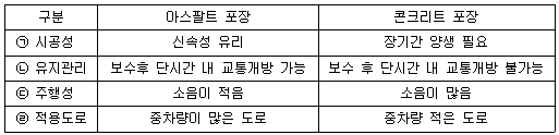 도로의 포장 방법에 따른 특성을 비교한 내용이 틀린 것은?