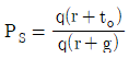 다음은 녹색시간 동안 방출되는 용량이 한 주기 동안의 도착량보다 많은 경우, 신호교차로에서의 대기행렬모형이다. 정지하는 차량의 비율(PS)로 옳은 것은? (단, r: 유효적색시간(초), g: 유효녹색시간(초), q: 한 접근로의 평균 도착교통류율(pcu/초), to: 녹색신호의 시작에서부터 대기행령이 완전히 소멸 되는 시간(초))