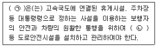 고속국도 휴게시설 등에의 도로안전시설 설치 및 관리에 관한 아래 설명에서, ㉠과 ㉡에 들어갈 내용이 모두 옳은 것은?