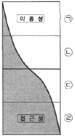 각 도로의 접근성과 이동성의 관계를 나타낸 아래 그림에서 각 구간 (㉠~㉣)에 해당하는 기능별 도로의 종류가 모두 옳은 것은?