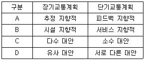 장ㆍ단기 교통계획의 차이점에 대한 설명으로 틀린 것은?