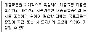 대중교통의 육성 및 이용촉진에 관한 법률상 아래와 같은 목적으로 지정하는 것은?