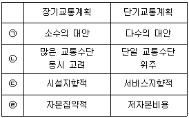 장기교통계획과 단기교통계획의 특성을 비교한 내용으로 옳지 않은 것은?