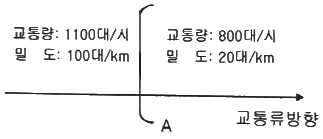 구간별 교통류의 상태가 아래와 같을 때, 그 경계면 AA에서 후방 충격파의 속도는?