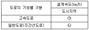 다음 중 도로의 기능별 구분에 따른 ㉠과 ㉡의 설계속도 기준이 모두 옳은 것은?