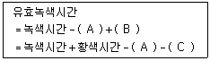 유효녹색시간을 산정하는 아래 공식의 ( ) 안에 들어갈 용어가 모두 옳은 것은?