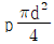표면장력이 T이고 지름이 d인 비누풍선의 내부와 외부의 압력 차이가 p일 때, 비누풍선의 표면장력에 의한 힘 T π d와 평형을 이루는 힘은?