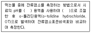 다음은 먹는물수질공정시험기준상 잔류염소-OT 비색법에 관한 설명이다. ( )에 들어갈 용어를 순서대로 나열한 것은?
