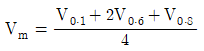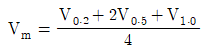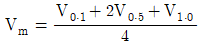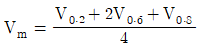 A지점의 개수로 유량측정을 위해서 유속-면적법을 이용할 때, 3점법으로 계산하는 식으로 옳은 것은? (단, Vm은 수심평균유속이고, V의 아래첨자는 수심이 1일 때 수면으로부터 유속을 측정한 지점이다.)