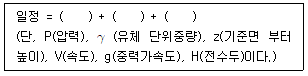 유체의 에너지방정식을 아래와 같이 표기했을 때 괄호 안에 들어갈 내용에 포함되지 않는 것은?