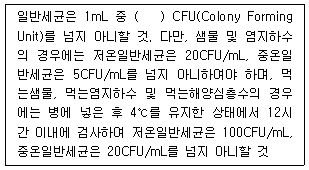 먹는물 수질기준 및 검사 등에 관한 규칙상 미생물에 관한 기준 중 일반세균에 관한 내용이다. ( )에 들어갈 내용은?