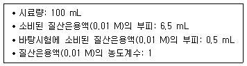 먹는물수질공정시험기준상 적정법으로 염소이온을 측정한 결과가 다음과 같을 때 염소이온의 농도(mg/L)는?