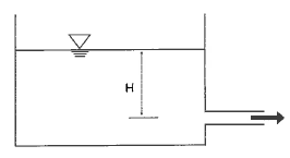 그림과 같은 수조의 벽에서 작은 오리피스로 물을 유출시킬 때, 유속을 2배 증가시켰다. 수심(H)은 어떻게 변하는가? (단, 주어진 조건이외는 동일조건으로 가정한다.)