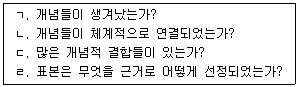 근거이론 연구에 적용하는 '연구의 경험적 근거' 평가기준을 모두 고른 것은?