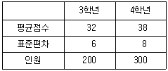초등용 적성검사의 점수가 각 학년 별로 정규분포를 이룬다고 가정할 때, 이 검사 결과에서 4학년 평균점수보다 낮은 3학년 학생의 수는?
