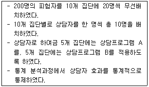다음의 절차에 따라서 진행한 연구에 해당하는 실험설계 방법은?