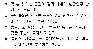 동년배집단 연구에 관한 설명으로 옳은 것을 모두 고른 것은?
