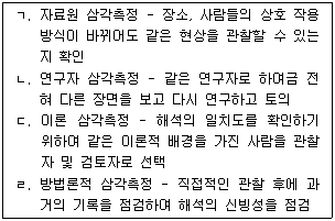 질적 연구의 삼각측정(triangulation)에 관한 설명으로 옳은 것을 모두 고른 것은?