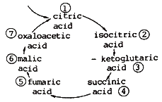 다음은 크렙스 회로(Kreb's cycle)를 표시한 것이다. 이 중 단백질(아미노산)이 생성되는 위치는?