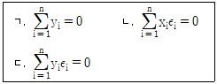 단순회귀모형 Yi=α+βXi+ei(i=1,2,…,n)에서 잔차