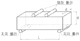 콘크리트 휨강도 시험방법에 대한 아래의 그림에서 지간의 길이(L)로서 가장 적당한 것은? (단, 치수의 단위는 mm이다.)