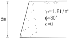 아래 그림과 같은 옹벽에 작용하는 전주동토압은 얼마인가?