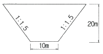 다음 그림과 같은 단면의 수로를 굴착할 때 길이가 10m 라면 절취토량은?