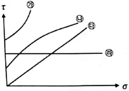 그림과 같은 파괴 포락선 중 완전 포화된 점성토에 대해 비압밀비배수 삼축압축(UU)시험을 했을 때 생기는 파괴포락선은 어느 것인가?