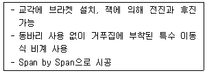 아래의 표는 장대교 시공법의 특징에 대한 설명이다. 다음 중 어느 공법에 대한 설명인가?